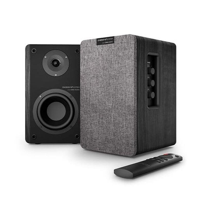 Juego de dos altavoces activos de estantería 2.0, DSP con varios modos de ecualización, entrada doble RCA Bluetooth 5.0, entrada óptica TOSLINK, entrada HDMI CEC, ajuste de graves, agudos y volumen en la parte lateral, carcasa de MDF y mando a distancia.