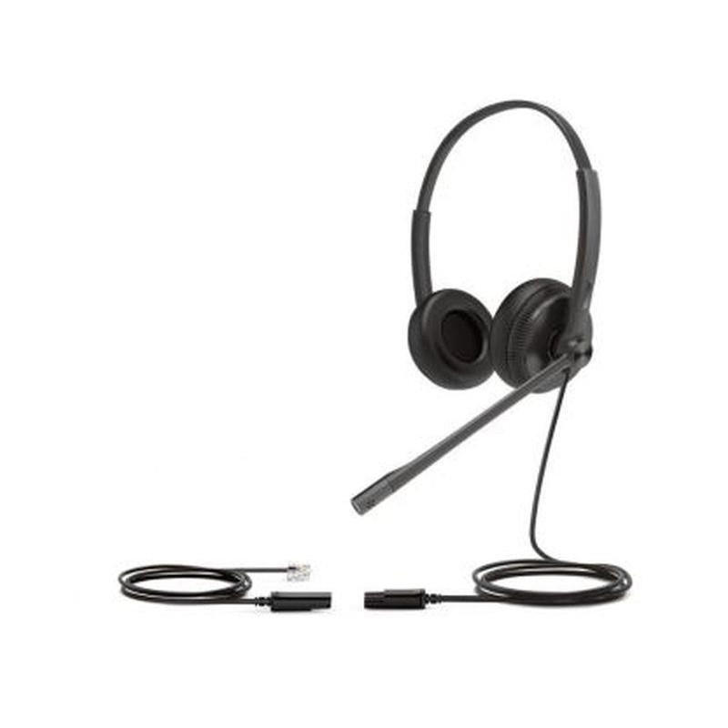 Microauricular biaural cableado, con conector QD y adaptador a RJ9 (almohadillas de simil-cuero)