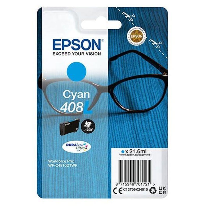 Cartucho de tinta Epson original con ref. C13T09K24010 de color cian con una capacidad de 1.700 paginas. Serie gafas.