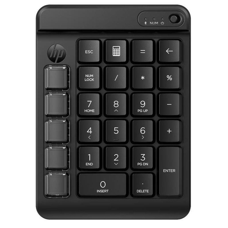 Obtén más que números de tu teclado. El teclado numérico inalámbrico programable HP 430 es totalmente personalizable[1] para que tengas un control total. Además del diseño estándar de un teclado numérico, puedes configurar una columna de cinco teclas en blanco según tus necesidades. De hecho, este teclado cuenta con nueve teclas programables con teclas intercambiables para ofrecerte un sinfín de opciones para tu flujo de trabajo.
