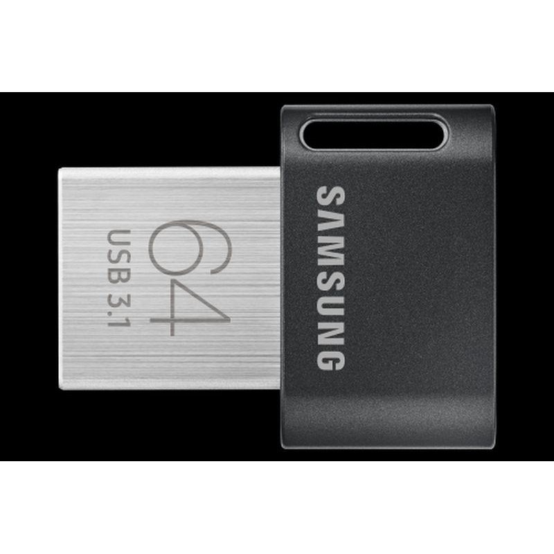 Samsung MUF-64AB. Capacidad: 64 GB, Interfaz del dispositivo: USB tipo A, Versión USB: 3.2 Gen 1 (3.1 Gen 1), Velocidad de lectura: 300 MB/s, Velocidad de escritura: 30 MB/s. Factor de forma: Sin tapa. Protección mediante contraseña. Peso: 3,1 g. Color del producto: Gris, Plata