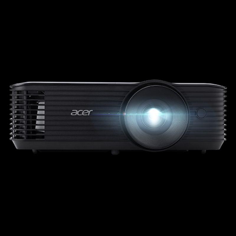Acer Essential X1128H. Brillo de proyector: 4500 lúmenes ANSI, Tecnología de proyección: DLP, Resolución original del proyector: SVGA (800x600). Tipo de fuente luminosa: Lámpara, Duración de la fuente luminosa: 6000 h, Vida útil de la fuente luminosa (modo económico): 10000 h. Intervalo de longitud focal: 21.85 - 24.01 mm, Rango de apertura: 2,41 - 2,53. Señal analógica: NTSC, PAL, SECAM, Formatos gráficos soportados: 800 x 600 (SVGA), 1920 x 1200 (WUXGA). Modos de proyección: Techo, Frente, Parte trasera, Sistemas operativos compatibles: MacOS, Windows
