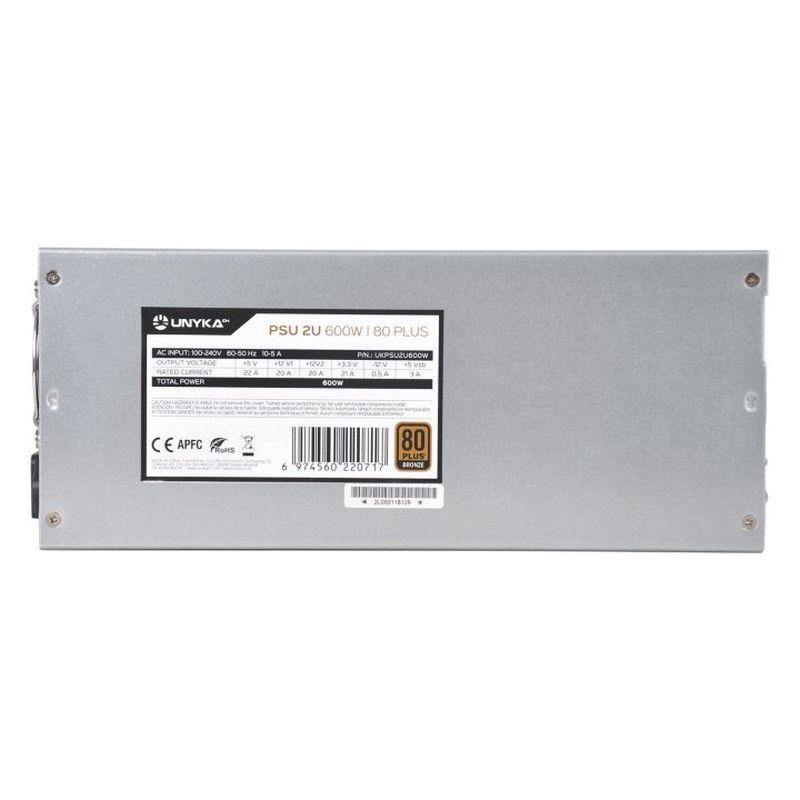 UNYKAch Fuente de Alimentación 2U 600W 80 Plus Bronce, 600 W, 100 - 240 V, 50 - 60 Hz, 5 - 10 A, Activo, 21 A
