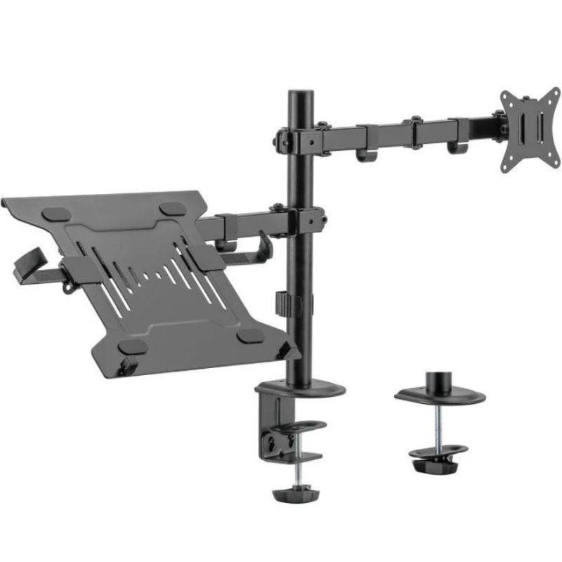 Soporte de mesa giratorio e inclinable para portátil y monitor/TV (3 pivotes, 2 brazos) de 17-32