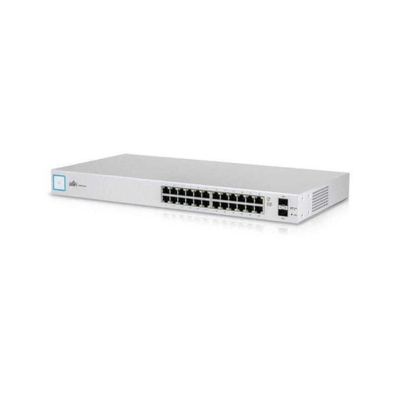 Ubiquiti Networks UniFi USW-24. Tipo de interruptor: Gestionado, Capa del interruptor: L2. Puertos tipo básico de conmutación RJ-45 Ethernet: Gigabit Ethernet (10/100/1000), Cantidad de puertos básicos de conmutación RJ-45 Ethernet: 24. Estándares de red: IEEE 802.3af, IEEE 802.3at. Conector eléctrico: Conector de alimentación AC-in. Montaje en rack