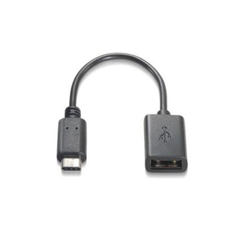Cable USB 2.0 con conector tipo USB-C macho en un extremo y tipo A hembra en el otro extremo.