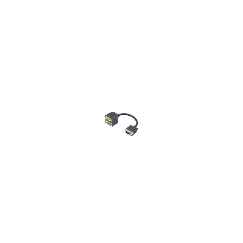 Alargador VGA cable división 2x HD15H 1x HD15M, 20 cm en color negro